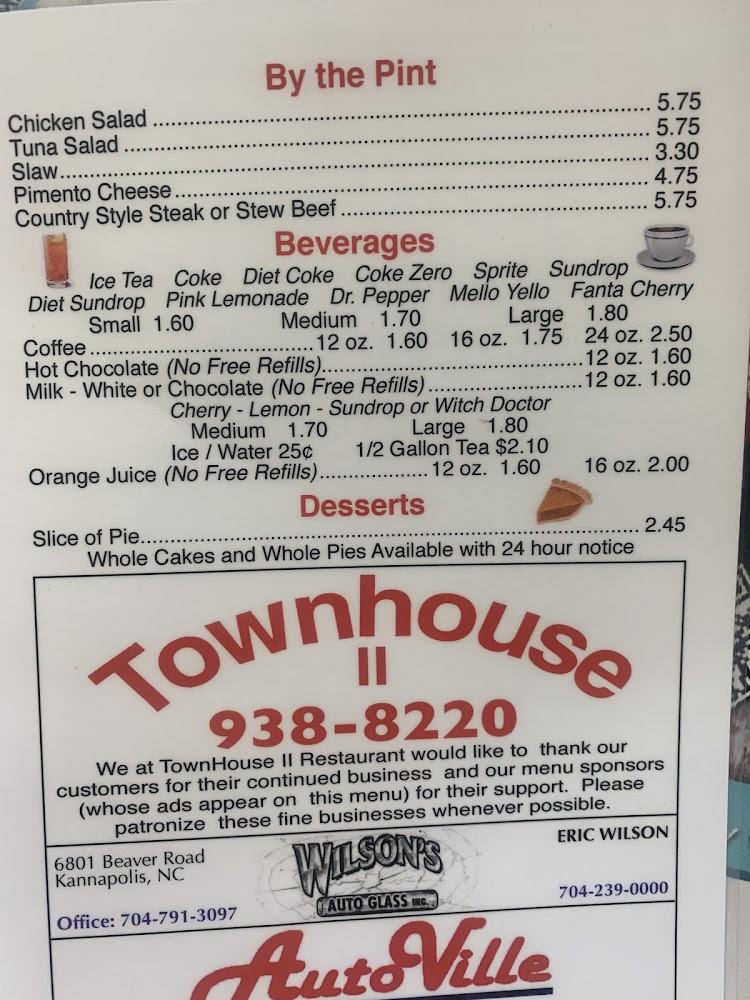 Welcome to Town House II, your go-to restaurant in Kannapolis, NC, where delightful flavors meet a cozy atmosphere. Located at 1870 S Main St, we offer an extensive menu featuring excellent coffee, delicious desserts, and a variety of local specialties. Perfect for breakfast, lunch, or dinner, our casual dining experience caters to everyone, including families and solo diners. Enjoy the convenience of takeout, delivery, and wheelchair accessibility. With affordable prices and a welcoming ambiance, Town House II is ideal for groups and tourists alike. Join us for an unforgettable meal and savor the best of simple, traditional cuisine!
